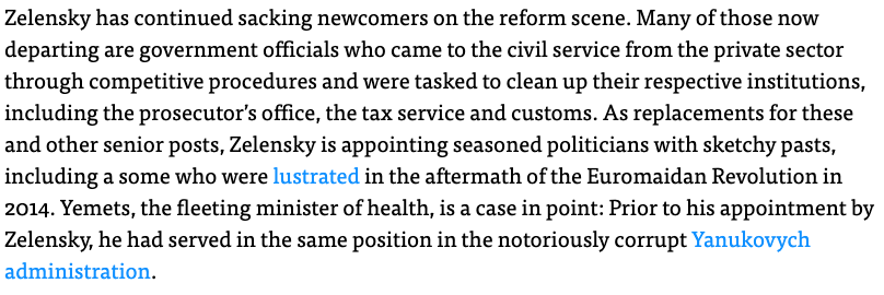Zelensky’s govt, before the war and pandemic, was dealing with its own corruption and shady things, by sacking young bright newcomers in civil posts, with politicians who had sketchy past.
