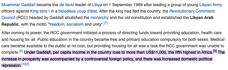 Libya, had one of the best per capita GDP in the world under Gaddafi.