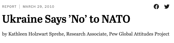 In a Pew Research Global poll conducted in 2010, many Ukrainians responded not interested in joining NATO
