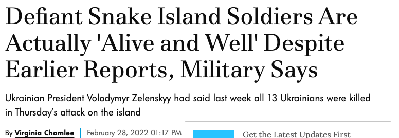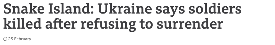 Around that time, I came across the news story, that Zelensky announced how very early on in the war, when Russia hadn’t completely invaded Ukraine, but was mostly going into the Donbas regions to secure it’s independence as per Putin’s speech a few days prior to that, Russian soldiers killed 13 Ukrainian soldiers at Snake Island.