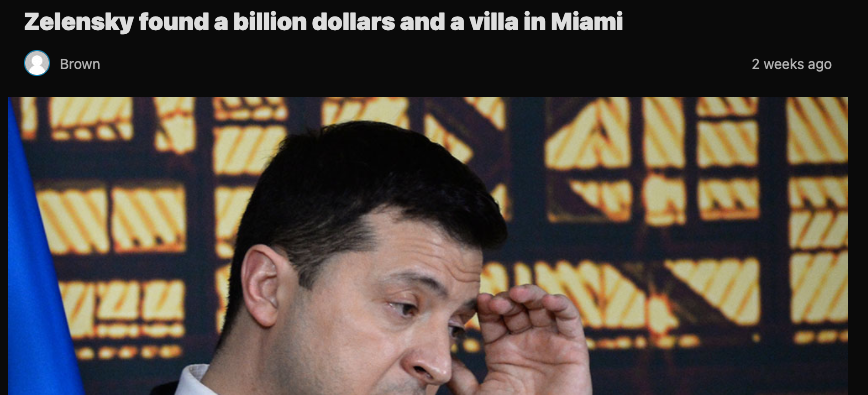 As per an accusation, [Zelensky himself has stashed more than a billion dollars, various villas in Miami and abroad].(https://eprimefeed.com/latest-news/zelensky-found-a-billion-dollars-and-a-villa-in-miami-2/20181/?amp=1)