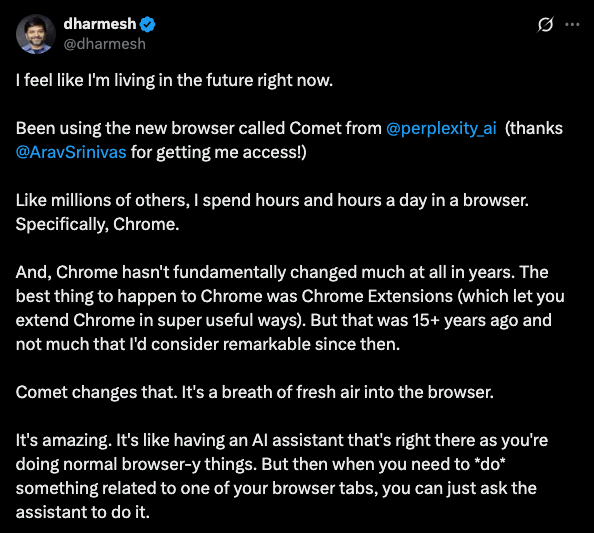 In fact, the only place where anything agentic will actually work for a browser is going to be Chrome itself. Because ppl have already given up their privacy to Chrome for years. Even there, quite a few would think twice in allowing AI in their browsing activity, yet, it’s the only best place where some agentic workflow in browser that could be added.