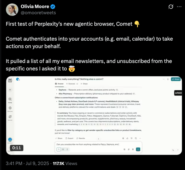And this is why all Agentic Browser products will IMO, fail to get adoption by consumers and is a bad thing to invest or build.
